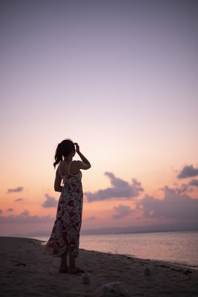 割と早い段階で日が沈んで、その時点では空はまだうっすらとピンクになっている程度。まだ時間はあったので音楽を聞きながら砂浜に寝転んでいたら段々と焼けてきて、最後はきれいな夕焼け空を見ることができました。