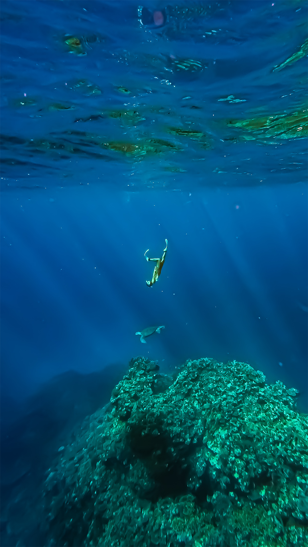 1つ目のポイントで早速ウミガメがいて、それと絡む素潜り女子の動画を撮れたので、それだけでももういいかもしれない、なんて。