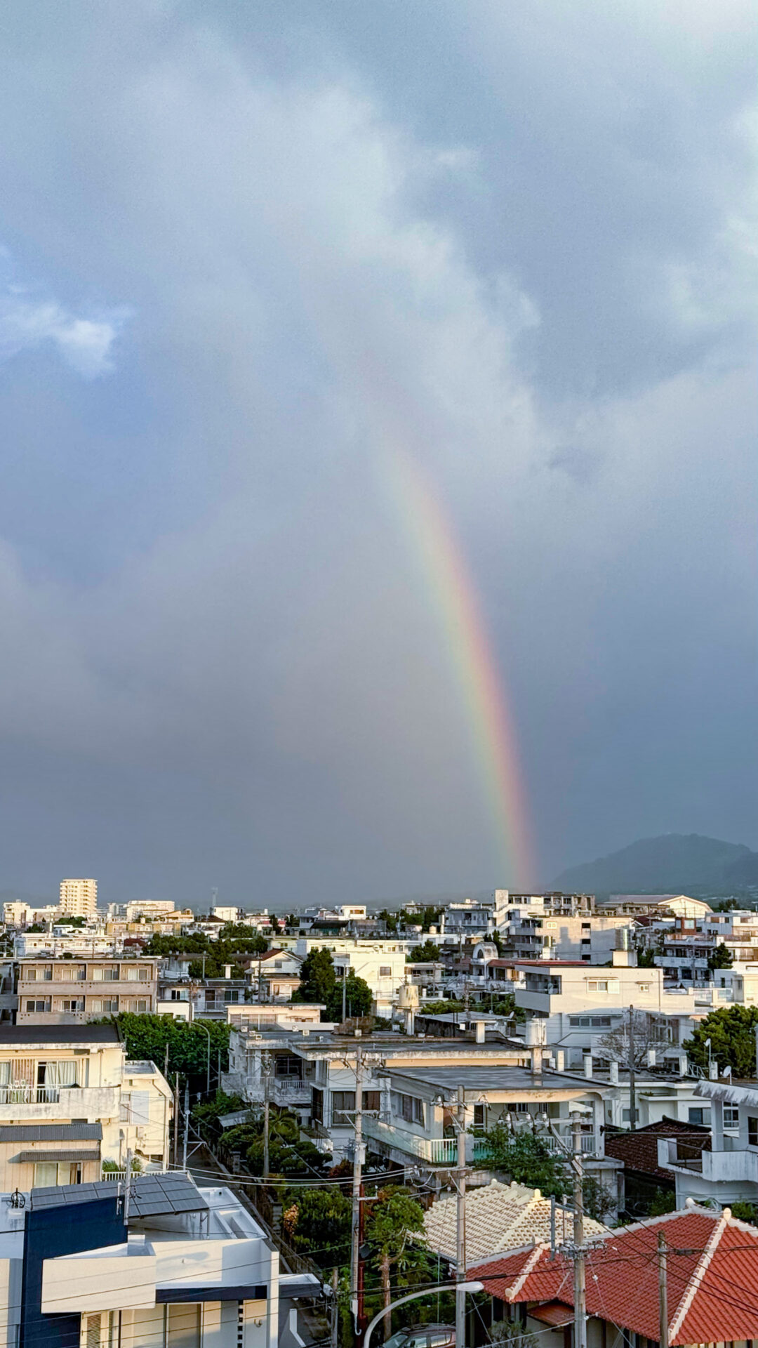 なんて思いながらゴミを捨てようと玄関のドアを開けたら、そっちには虹まで出てる。
